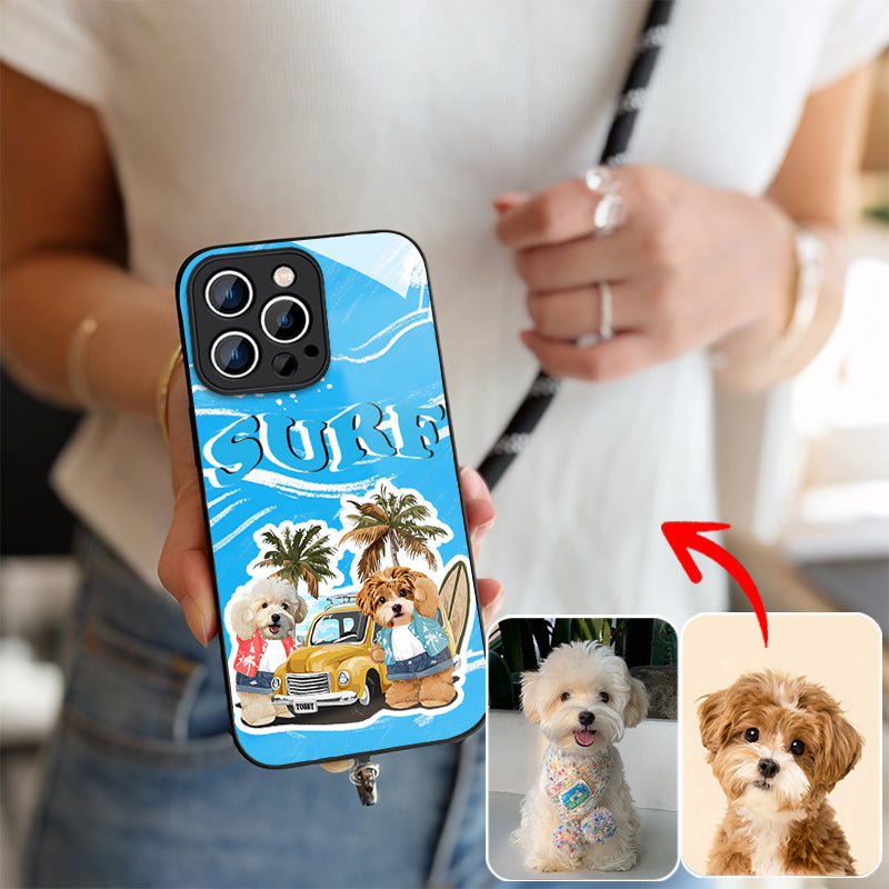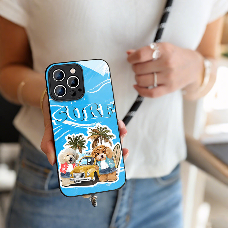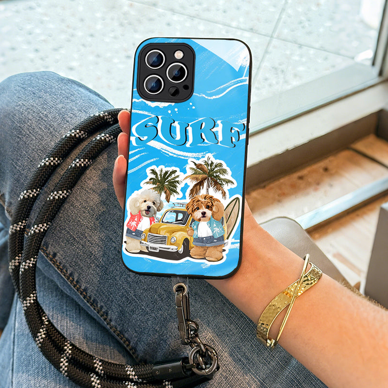 Ladyshome ガラス?チェーンショルダー付きiPhoneケース 夏のサーフィン 2頭デザイン 0515-1-1